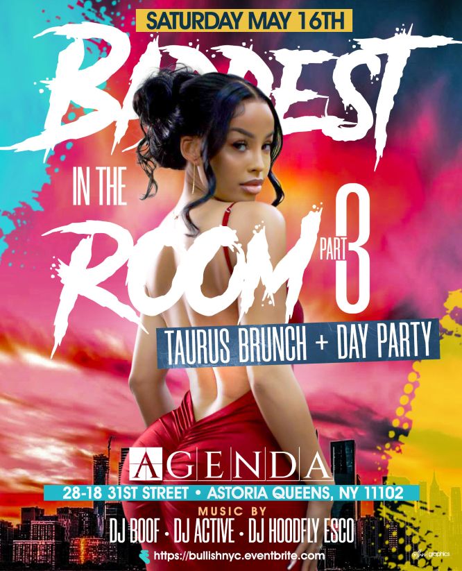 Saturday May 16th (2PM – 10PM) BADDEST IN THE ROOM3 Brunch + Day Party at AGENDA 28-18 31st Street Astoria, NY 11102 NO COVER BEFORE 5 PM WITH RSVP