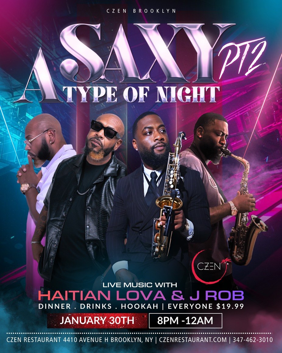 A SAXY TYPE OF NIGHT ft. HAITIAN LOVA & J ROB Friday January 30th Live Music at CZEN Brooklyn Get ready for an unforgettable evening of live saxophone, ...