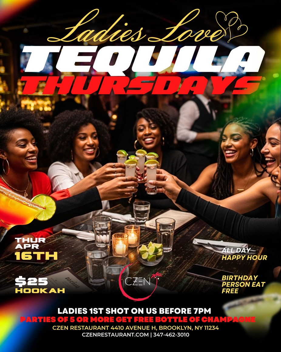 Ladies Love Tequila Thursdays: GRAND OPENING Thursday April 16th Every Thursday Gather your crew! Thursdays are better at CZEN Brooklyn. Join us April