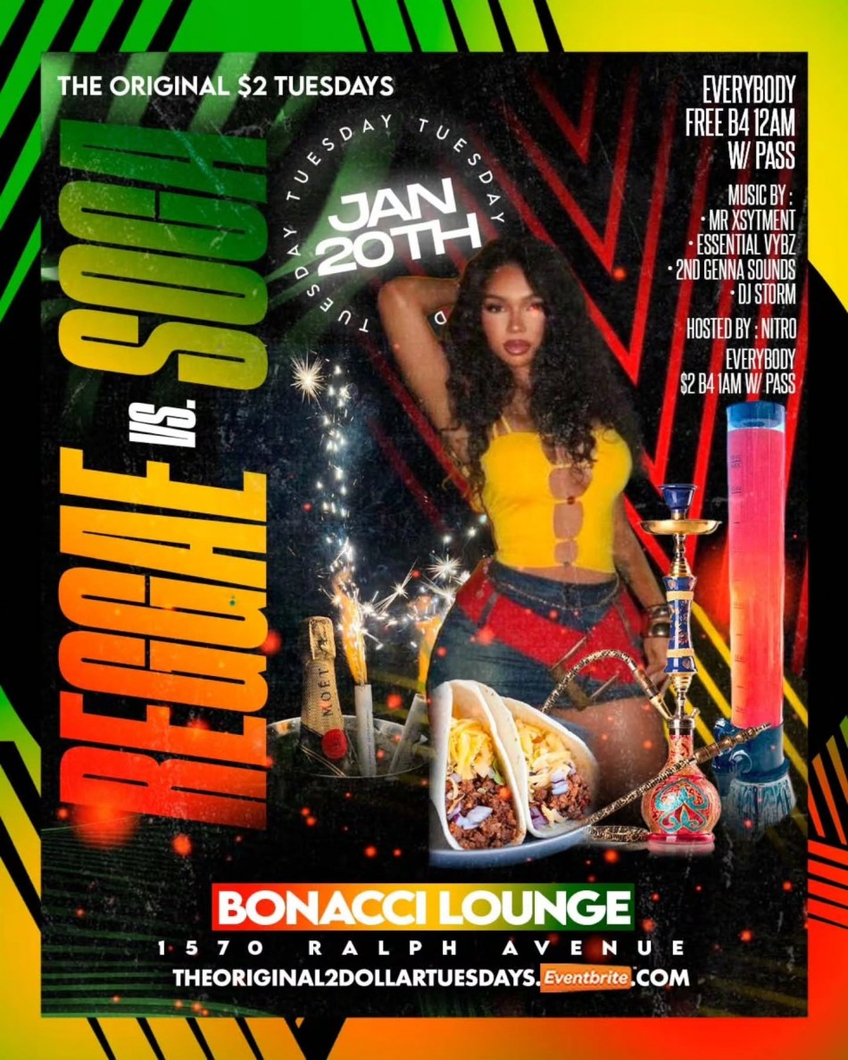 THE ORIGINAL $2 TUESDAYS LADIES NIGHT OUT Tuesday, January 13th Bonacci Lounge 1570 Ralph Avenue Music By: DJ Superstarr DJ Queen Luna Hosted By: Nitro Sounds ...