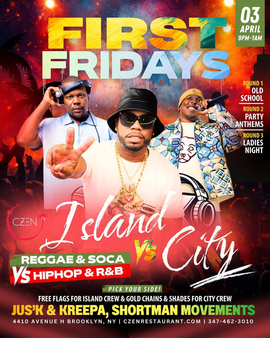 FIRST FRIDAYS: ISLAND VS CITY Friday April 3rd Island vibes meet city energy at CZEN Restaurant as we bring you the ultimate Island vs City showdown ️