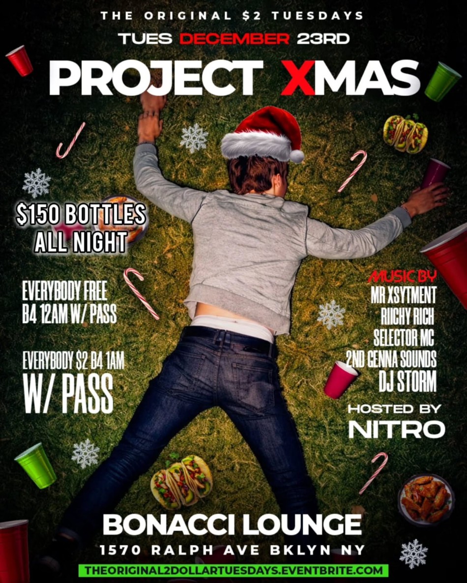 This $2 Tuesday , PROJECT XMAS PARTY • DRINK • SOCIALIZE • EAT • DANCE Music By NYC TOP DJs • @Mrxsytment • @_Dr.RiichyRiich_ • @DJHeat_2ndGenna ...