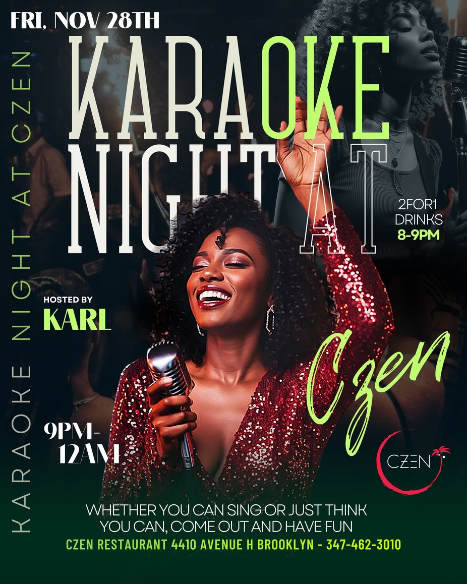 Karaoke Night at CZEN – Friday, November 28th! Friday November 28th Get ready for a night of music, laughter, and good vibes at CZEN Brooklyn! Whether you can ...